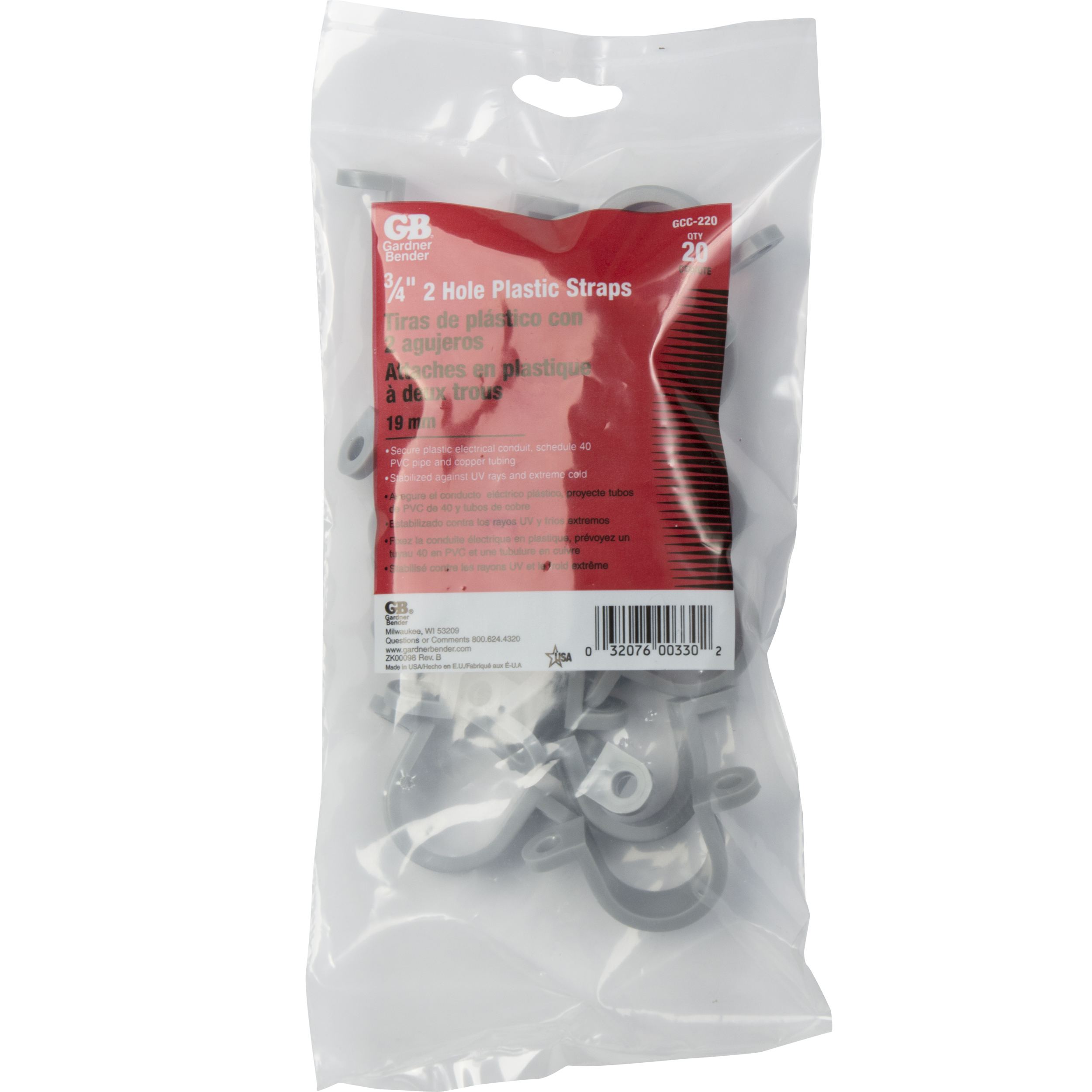 3/4 in (19 mm), Plastic Conduit Strap, Secures Elect Conduit, Sched 40 PVC, and Copper Tubing, Grey, (20-Pack)