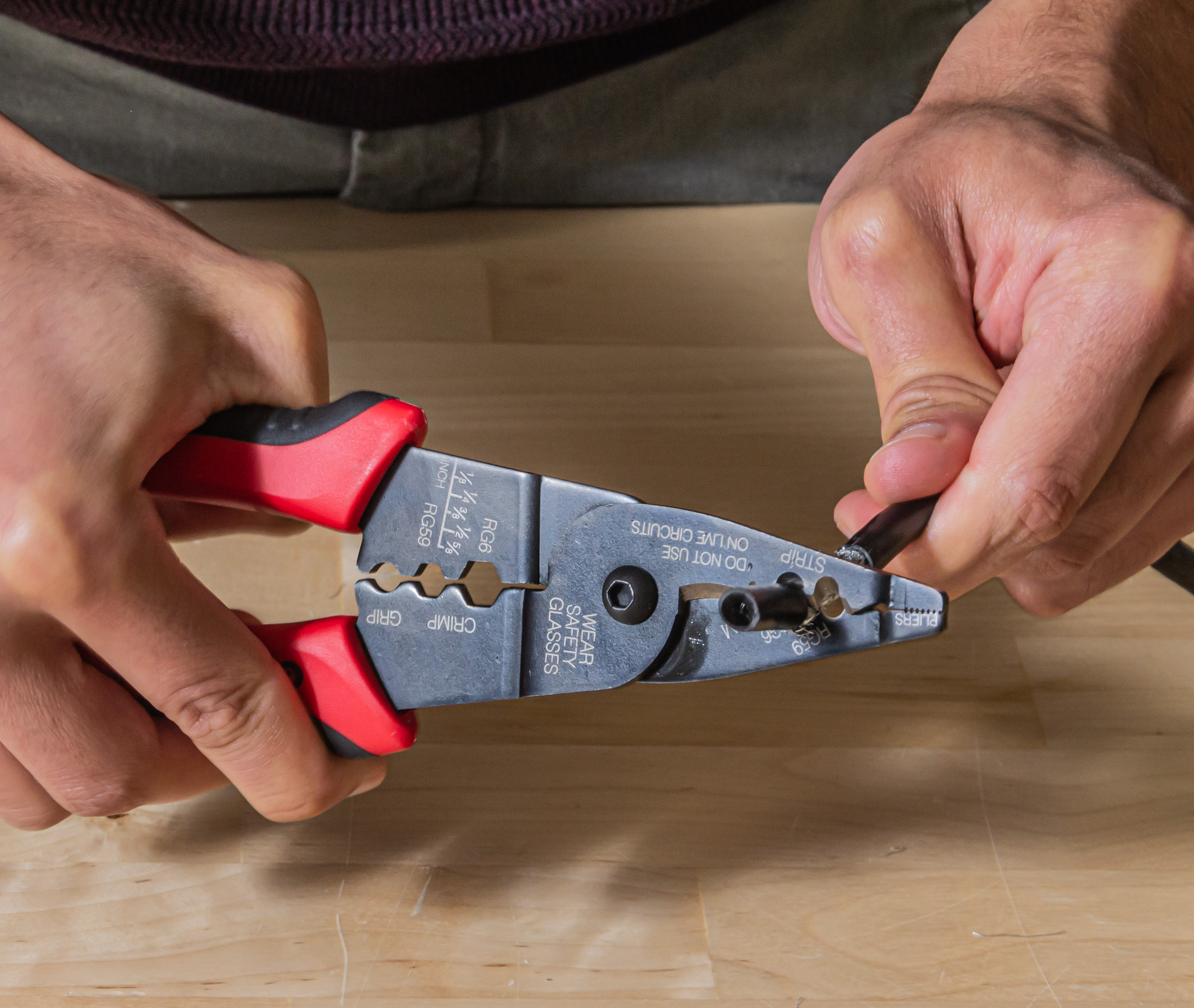 - Cut and strip RG-6 and RG-59 coaxial cable