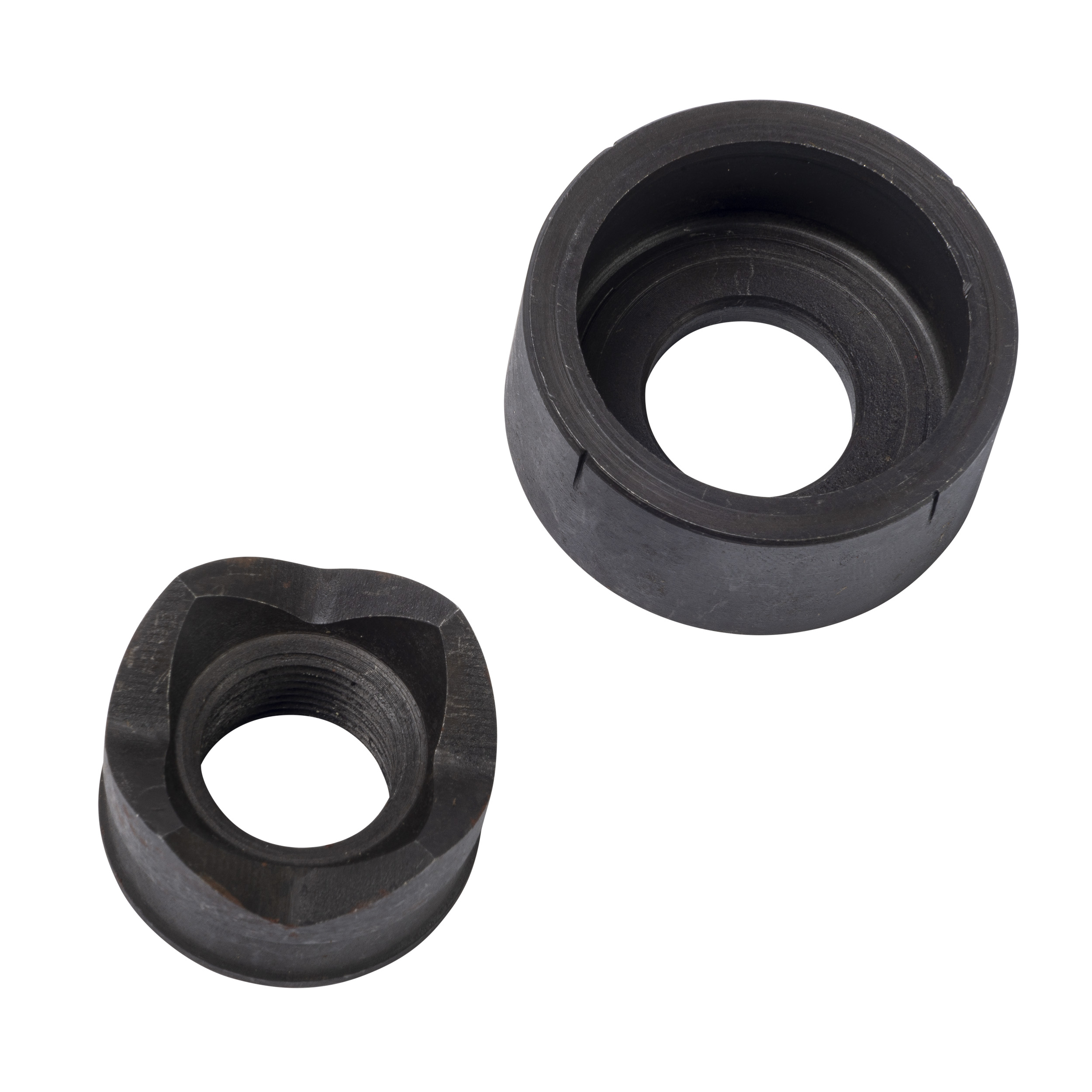 Gardner Bender offers a complete range in various knockout sets. The four-point knockout punches and dies are designed to punch clean, round holes through mild steel or other soft metals. Sizes are available to specifically permit fast and easy installation of electrical conduit and pipe in all commonly available increments. Gardner Bender dies are interchangeable, in any combination, with most brands of knockouts. Constructed from black oxide coated, hardened and tempered chrome-moly steel. Wheter you need an entire knockout set, or you're looking for a replacement part for an set you own, Gardner Bender has versatile, durable hole-making products that contractors depend on and ask for by name.