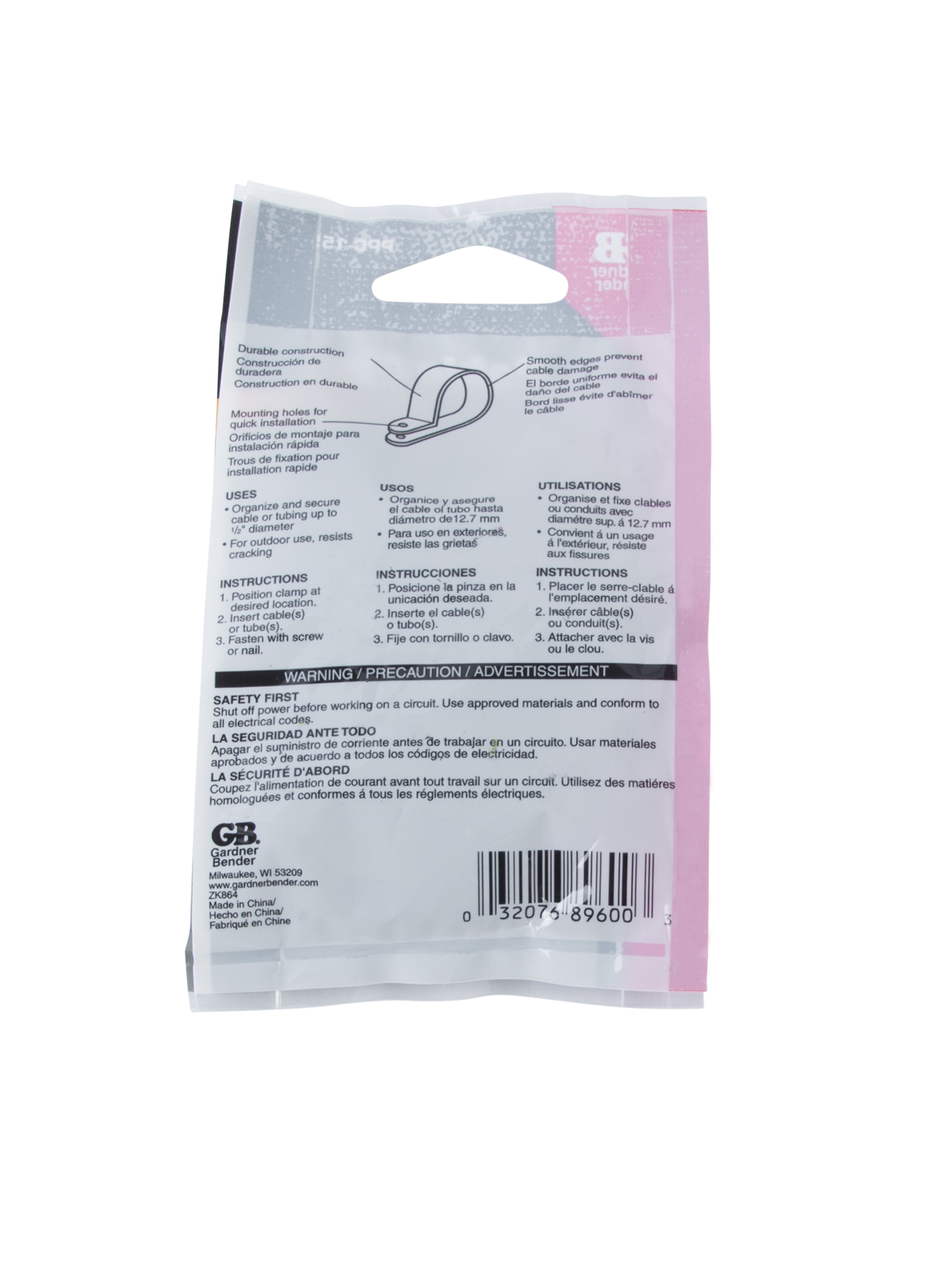 WHERE TO BUYGardner Bender Plastic Clamps are tough, durable, yet extremely lightweight and feature clean, smooth edges to minimize damage to cables. Our contractor-friendly design facilitates quick installations saving time and money. Clamps securely hold harnesses, cables and tubing up to 1/2" (13 mm) diameter. Designed for use in construction, maintenance and assembly-line applications, control cabinets, panels and general applications. Black UVB clamps offer superior performance indoors and out. Working temperature range: -54 C (-66 F) to 170 C (340 F) Instructions: Position clamp at desired location, insert cable(s) or tube(s), fasten with screw or nail.