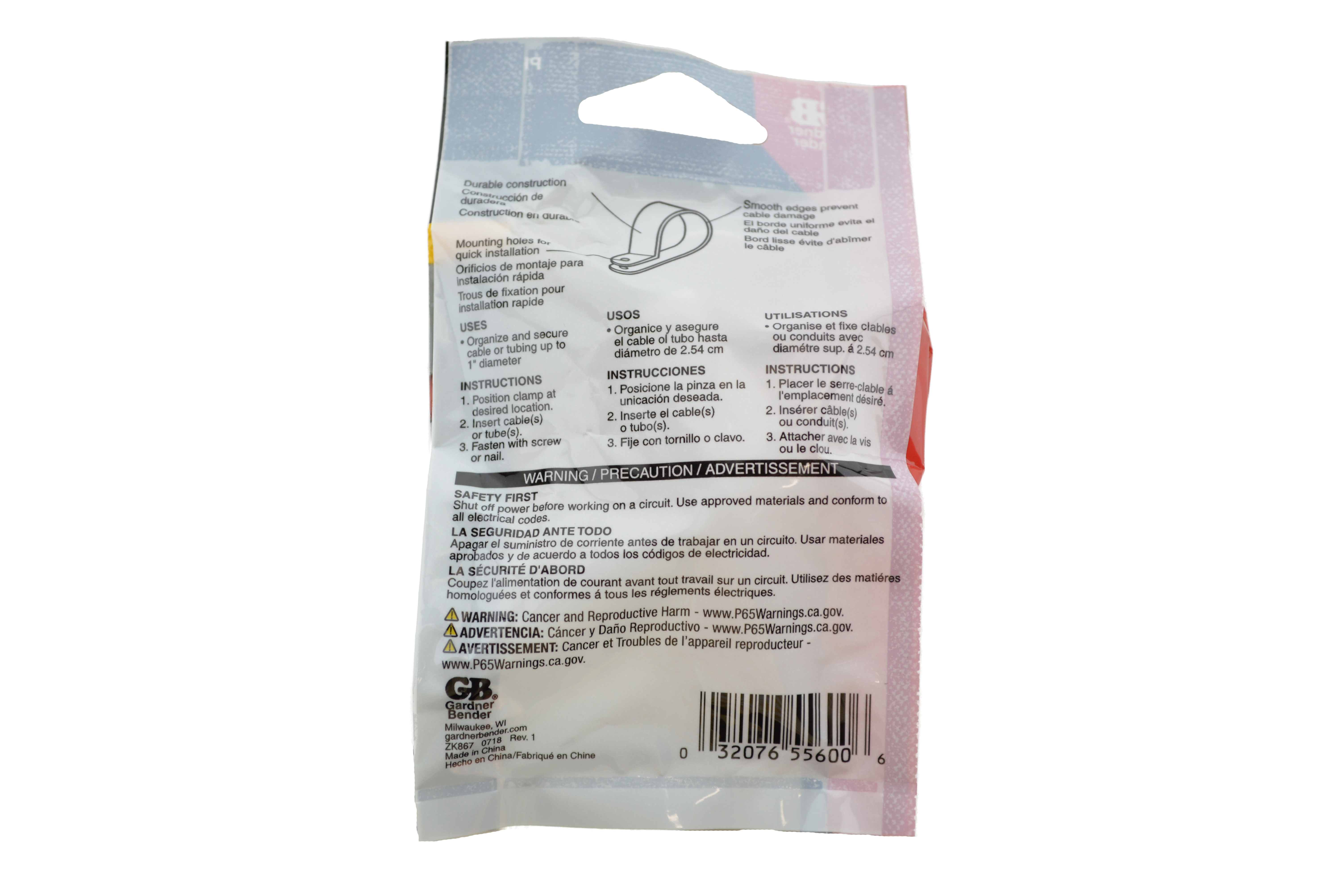 WHERE TO BUYGardner Bender Plastic Clamps are tough, durable, yet extremely lightweight and feature clean, smooth edges to minimize damage to cables. Our contractor-friendly design facilitates quick installations saving time and money. Clamps securely hold harnesses, cables and tubing up to 1" (2.54 cm) diameter. Designed for use in construction, maintenance and assembly-line applications, control cabinets, panels and general applications. Choose these clamps for superior performance indoors. Working temperature range: -54 C (-66 F) to 170 C (340 F) Instructions: Position clamp at desired location, insert cable(s) or tube(s), fasten with screw or nail.