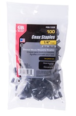 WHERE TO BUYThe Gardner Bender 1/4 in. Black Polyethylene Coaxial Staple (100-Pack) are ideal for securing RG-59 and RG-6 coaxial cables indoors and outdoors. These staples feature UV-resistant polyethylene saddles and can be driven in with a hammer.