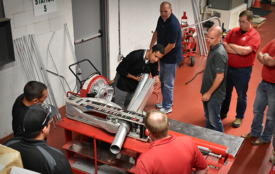 El equipo utilizó dobladoras manuales Gardner Bender , dobladoras de poder y dobladoras de mesa Bend-Mate para su demostración. Durante la sesión de capacitación, mostraron algunos de los beneficios innovadores que el equipo Gardner Bender ofrece a los contratistas para mayor comodidad, durabilidad y seguridad. Concluyeron la sesión de entrenamiento con una demostración del equipo de pesca con cable / tirar de .