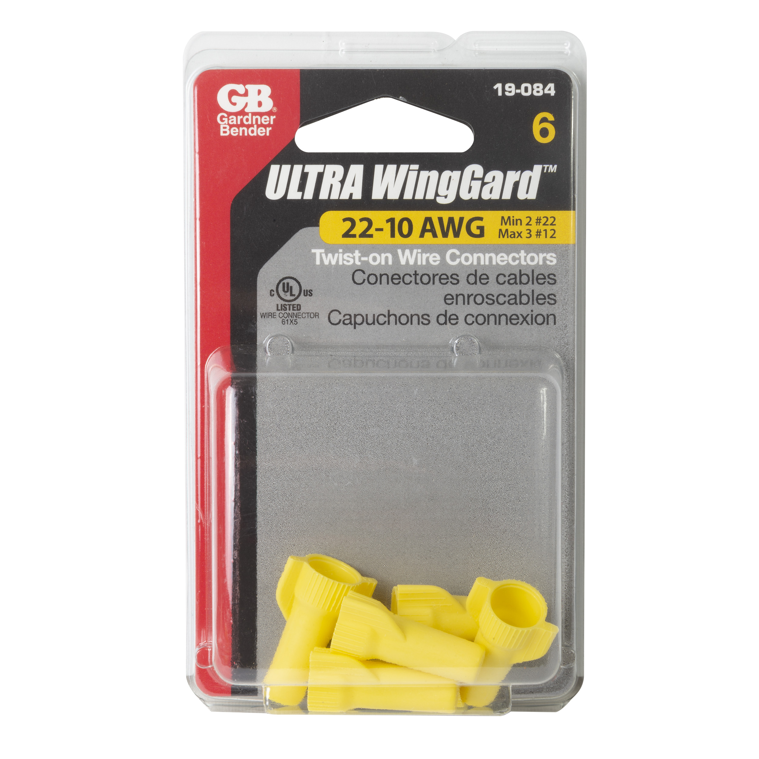 Los conectores de cable WingGard de GB ofrecen una calidad y durabilidad inigualables en un diseño de ala de gran apalancamiento y fácil de usar. Estos conectores resistentes ofrecen una amplia gama de opciones de conexión, lo que garantiza que un solo tamaño pueda hacer el trabajo de múltiples conectores estándar. Las alas barridas proporcionan un par de giro adicional y reducen la tensión de múltiples aplicaciones. La carcasa termoplástica proporciona resistencia y resistencia a los productos químicos, mientras que una falda larga evita la exposición del cable desnudo. El resorte de alambre cuadrado y galvanizado en el interior se ajusta instantáneamente a la forma y tamaño del empalme después de la inserción, lo que garantiza una conexión duradera que resiste la corrosión y excede los estándares UL de resistencia dieléctrica y fuerza de extracción del cable.