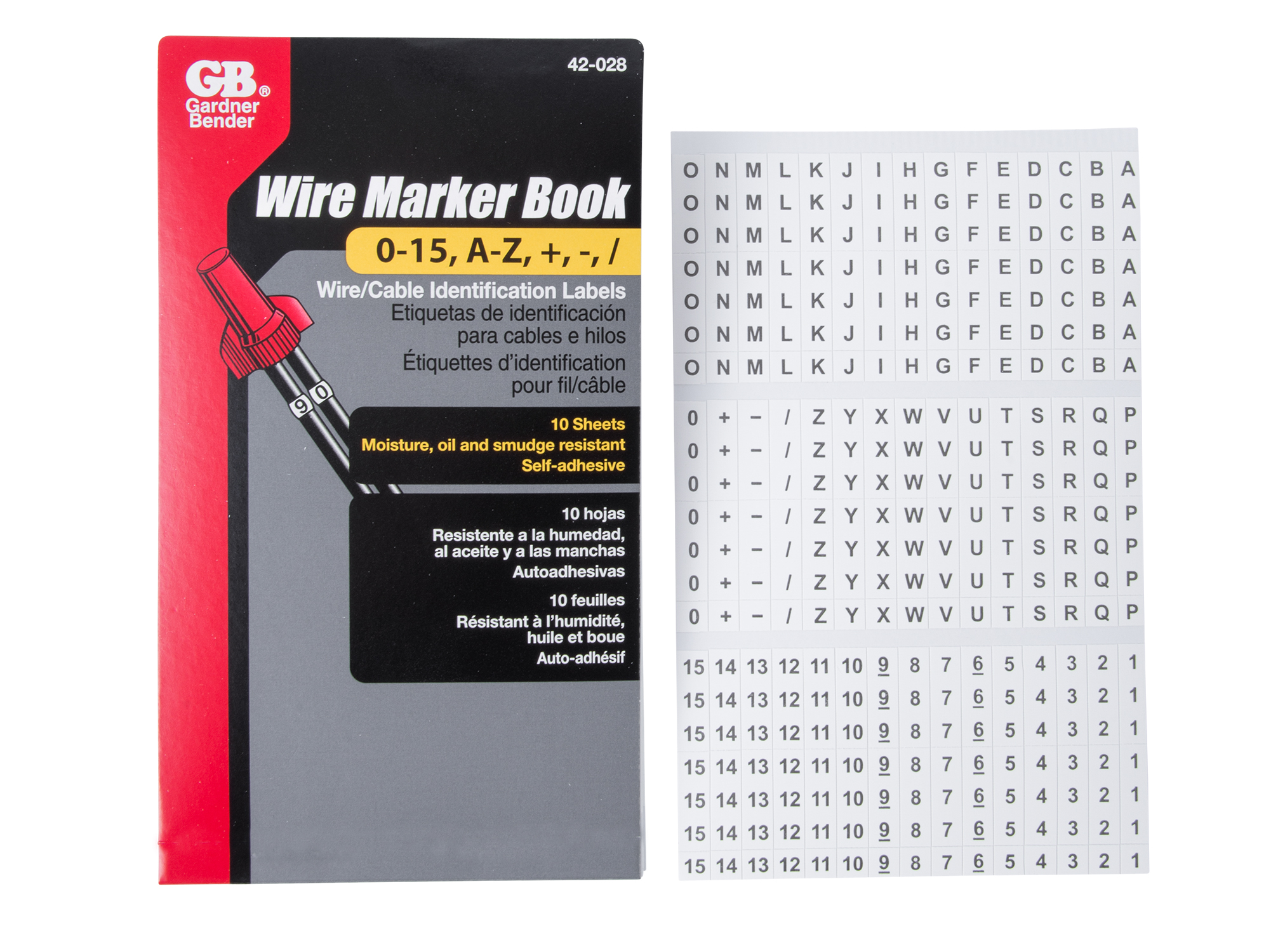 - Marqueur de borne assorti avec chaque marqueur de fil, plus une page supplémentaire de marqueurs de fils et de bornes vierges pour les légendes spéciales