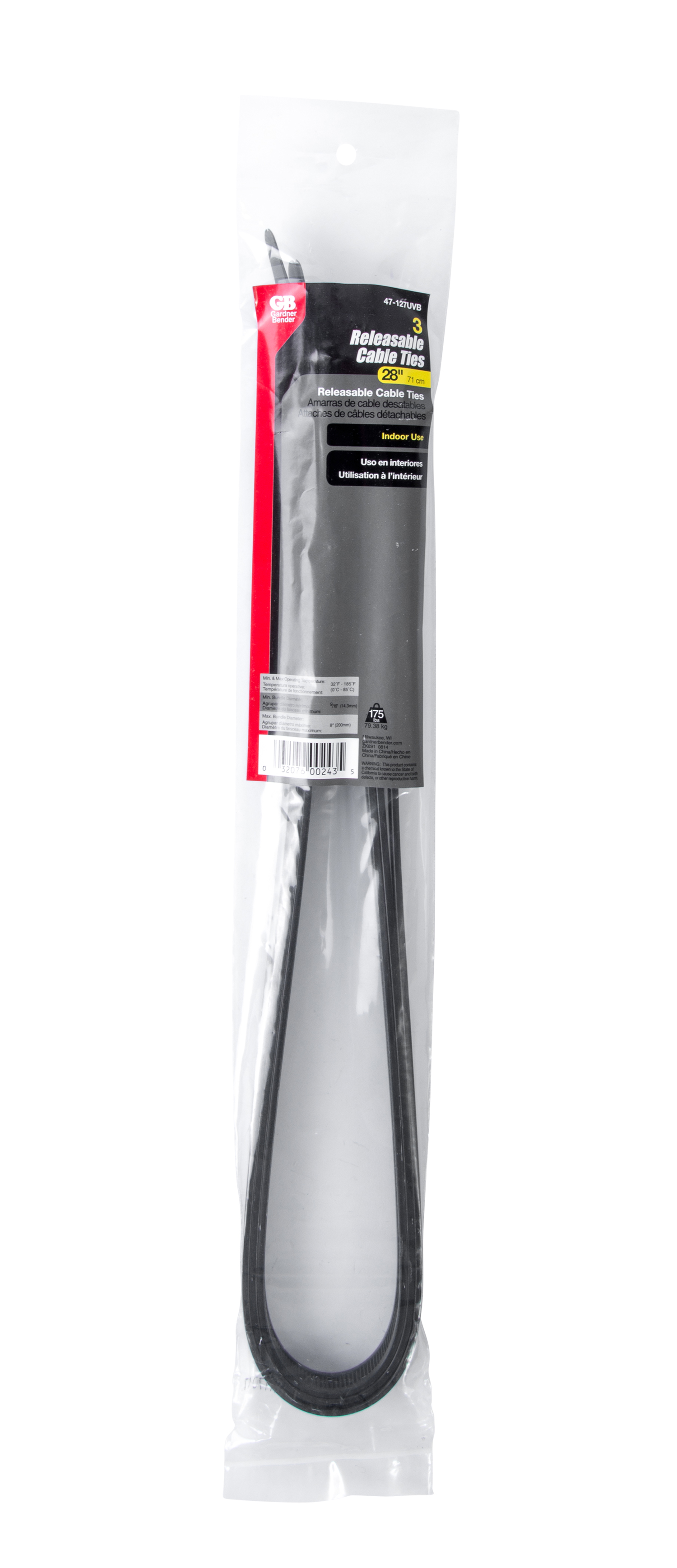 | Includes | Package includes 3 releasable cable ties in black |