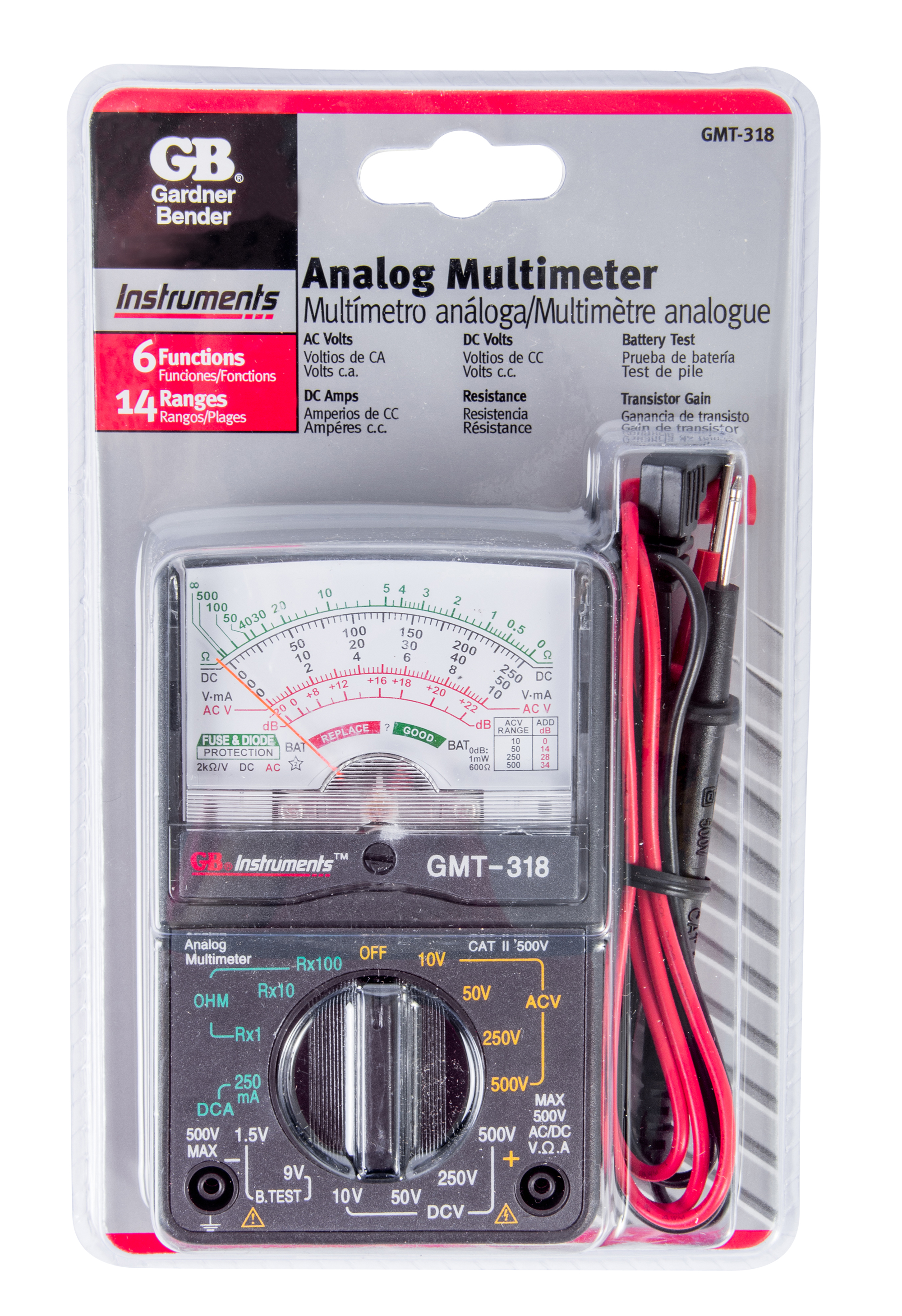 OÙ ACHETER MAINTENANT !L'équipement de test peut être utilisé à bon escient en s'assurant que l'équipement électrique est correctement installé et que son utilisation est sûre. Les installations défectueuses peuvent être mortelles. l'état des installations électriques peut être établi lorsque les contractants utilisent des équipements de test. Gardner Bender est heureux de proposer une gamme complète d'équipements de test innovants conçus pour rendre le travail électrique plus rapide et plus sûr. Le multimètre teste la tension alternative, la tension continue, les batteries, les ampères continus, la résistance et le gain du transistor. Le fusible et la diode sont protégés. Equipé d'une garantie d'un an et d'un manuel d'instructions trilingue.